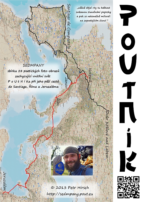 Vydejte se na pouť v básnických obrazech, které pro vás Petr Hirsch zachytil skrze pero a hledáček objektivu při pěším putování Evropou. Na své cestě dlouhé 16090 km v období od 1. června 2010 do 26. prosince 2012 při pěším putování ze Dvora Králové nad Labem do Santiaga de Compostela, Říma a Jeruzaléma napsal 28 básní, které doplnil vlastní autorskou fotografickou tvorbou. Snové obrazy, škádlivá erotika a filozofické otázky bytí jsou témata, kterých se ve své tvorbě dotýká způsobem, který třeba i vám bude blízký.